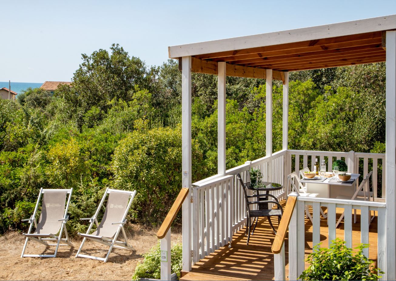 - Equipped veranda with table, chairs, and sun loungers, offering privacy and comfort