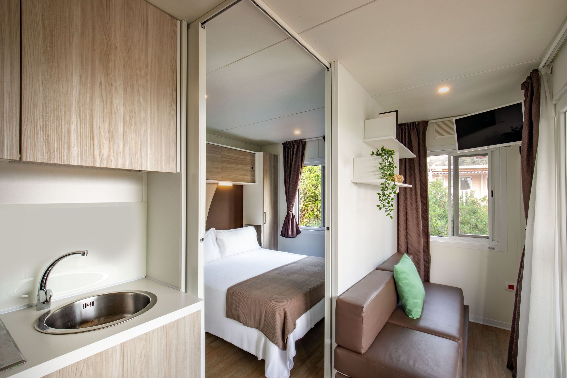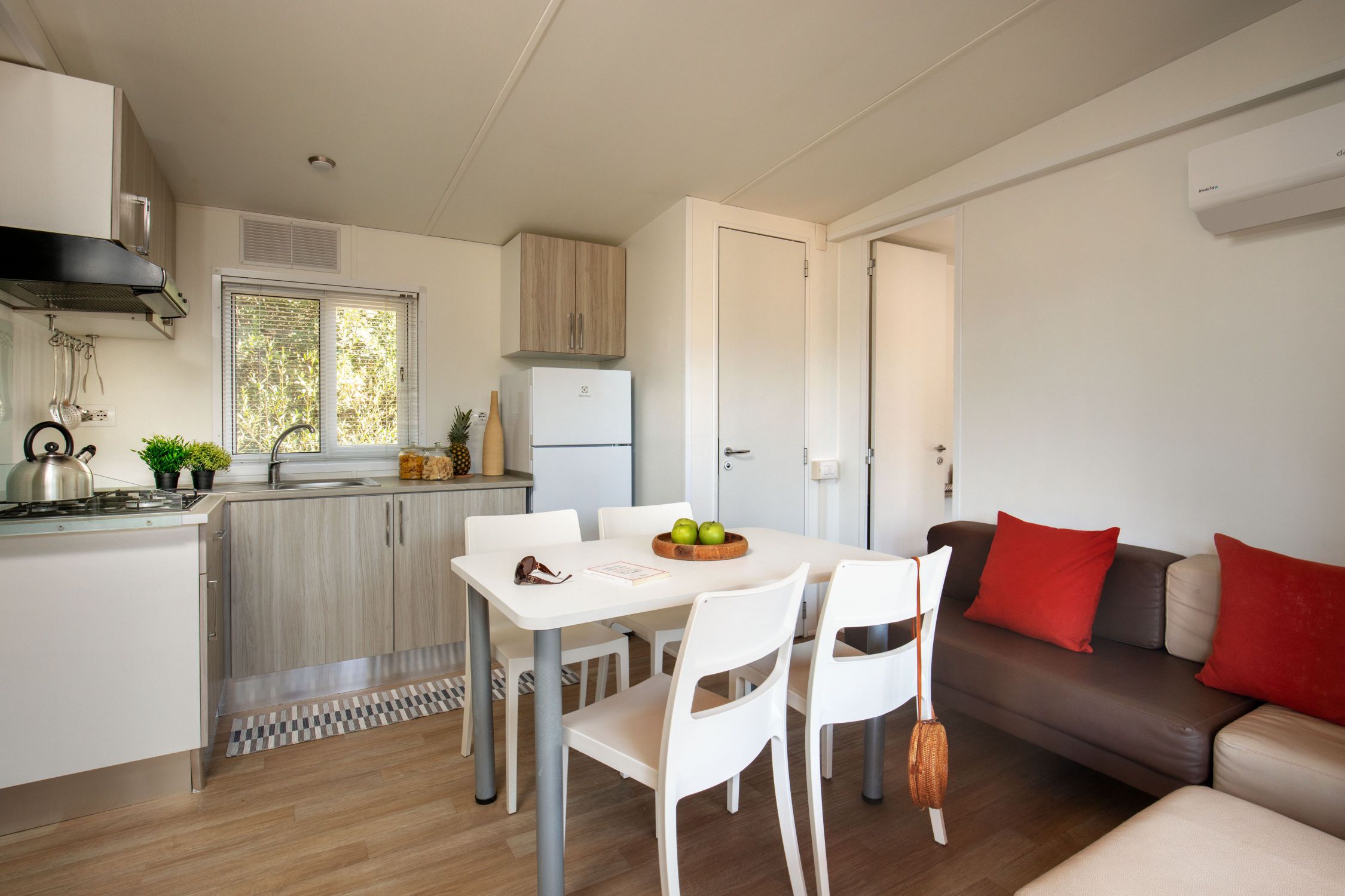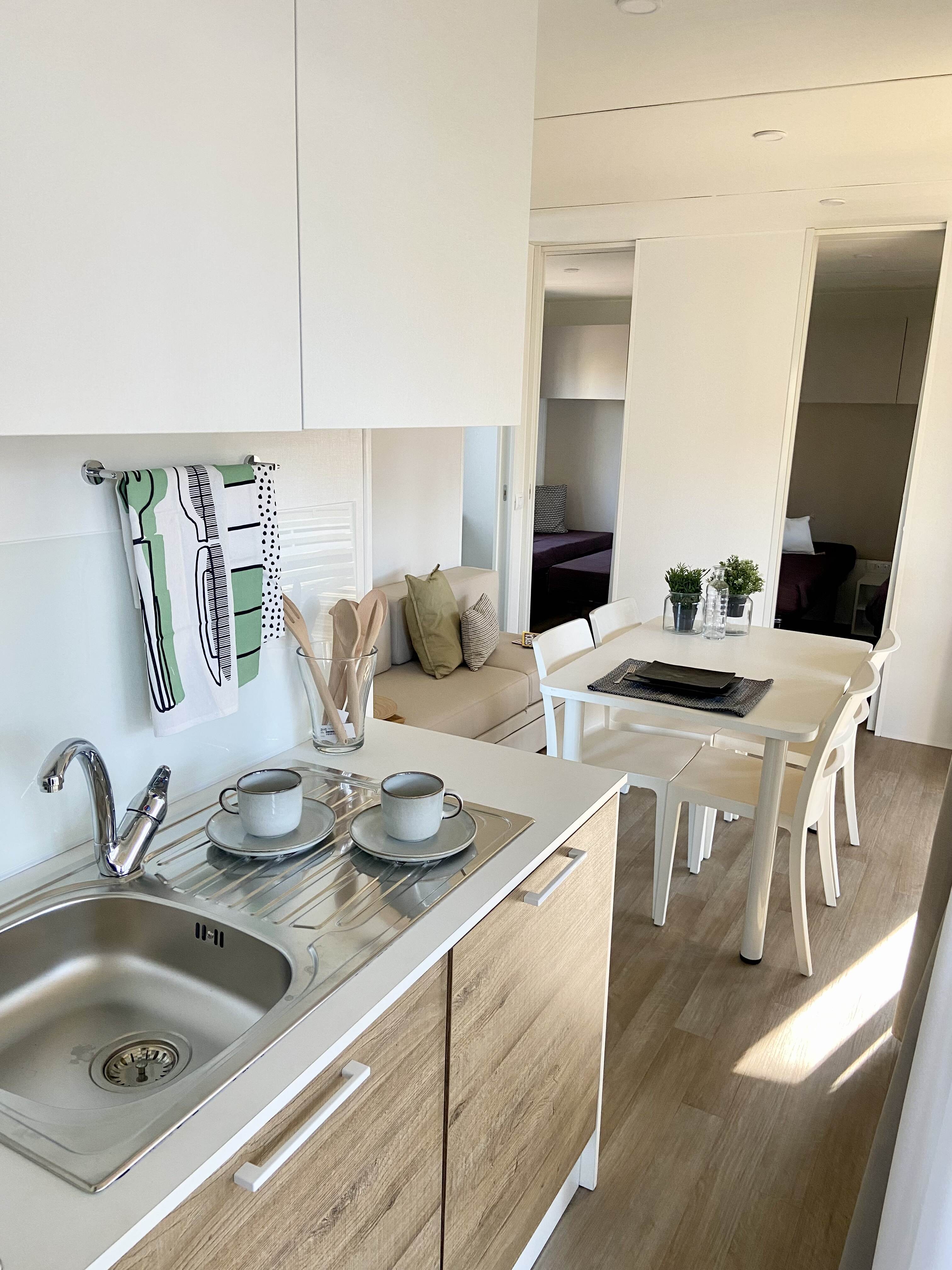 🌿 Mobile Home in the Green Area New for summer 2026: a mobile home with a fresh and modern design, created to offer maximum comfort and space. Just 200 meters from the sea, it is the largest in the 4-person category — perfect for families or couples.
