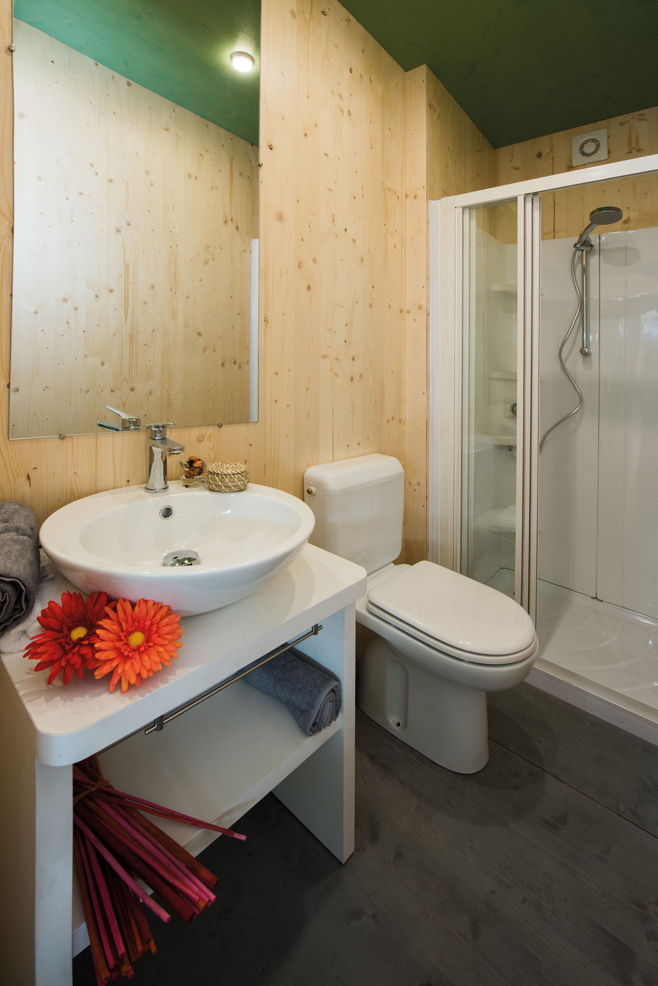 - Central bathroom with sink, shower, and toilet