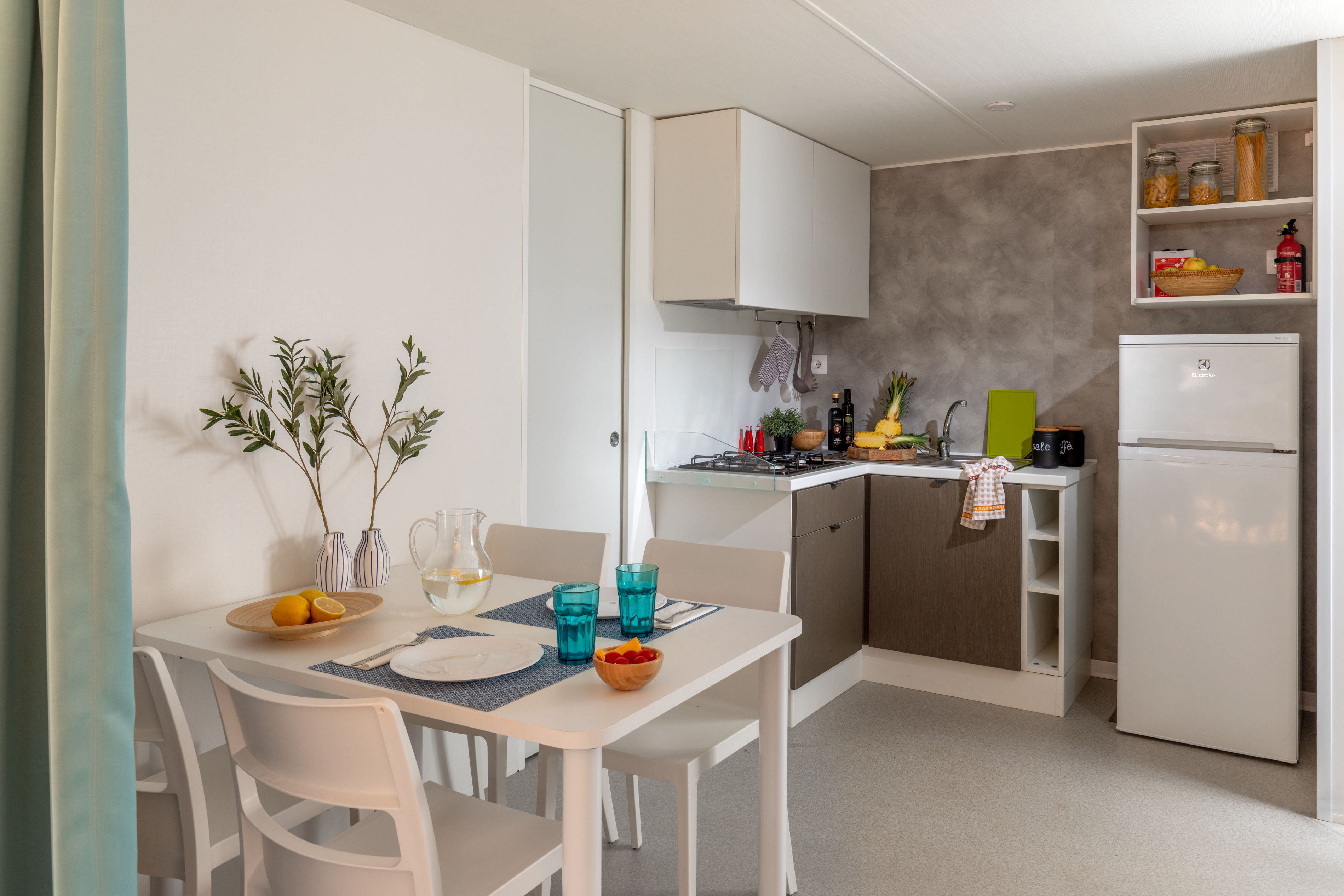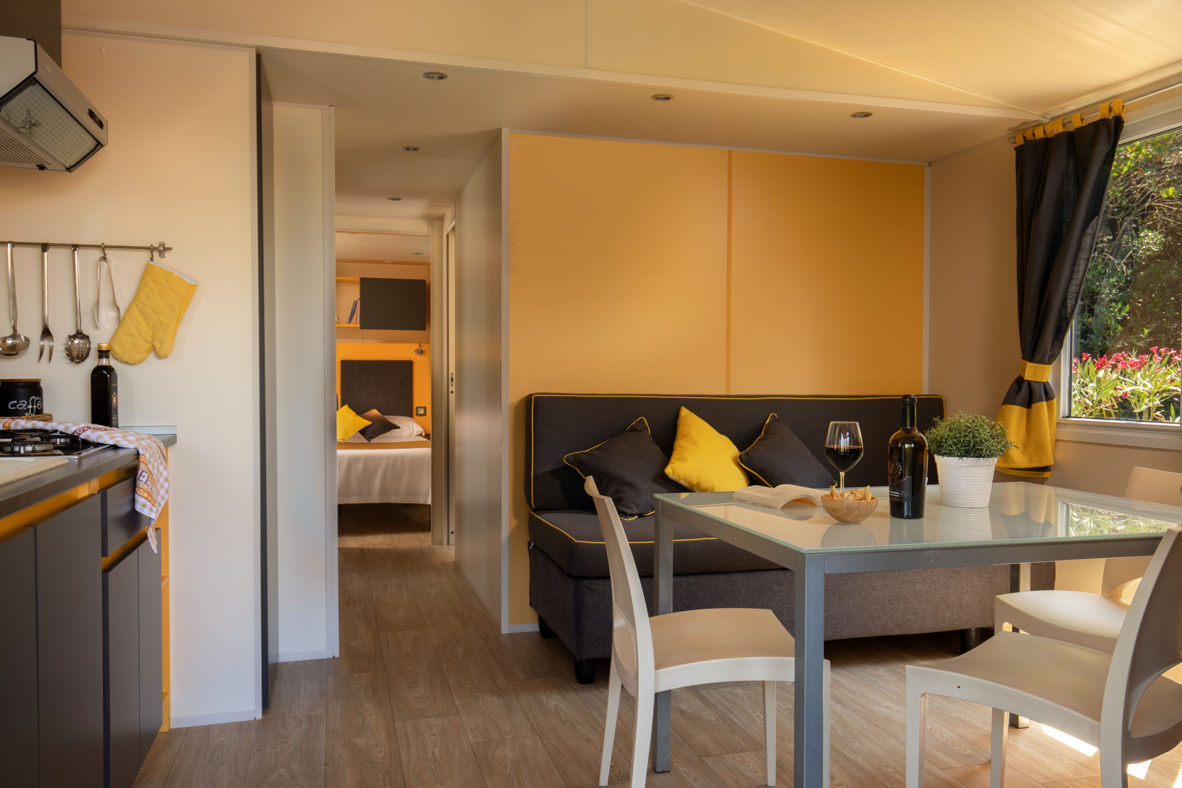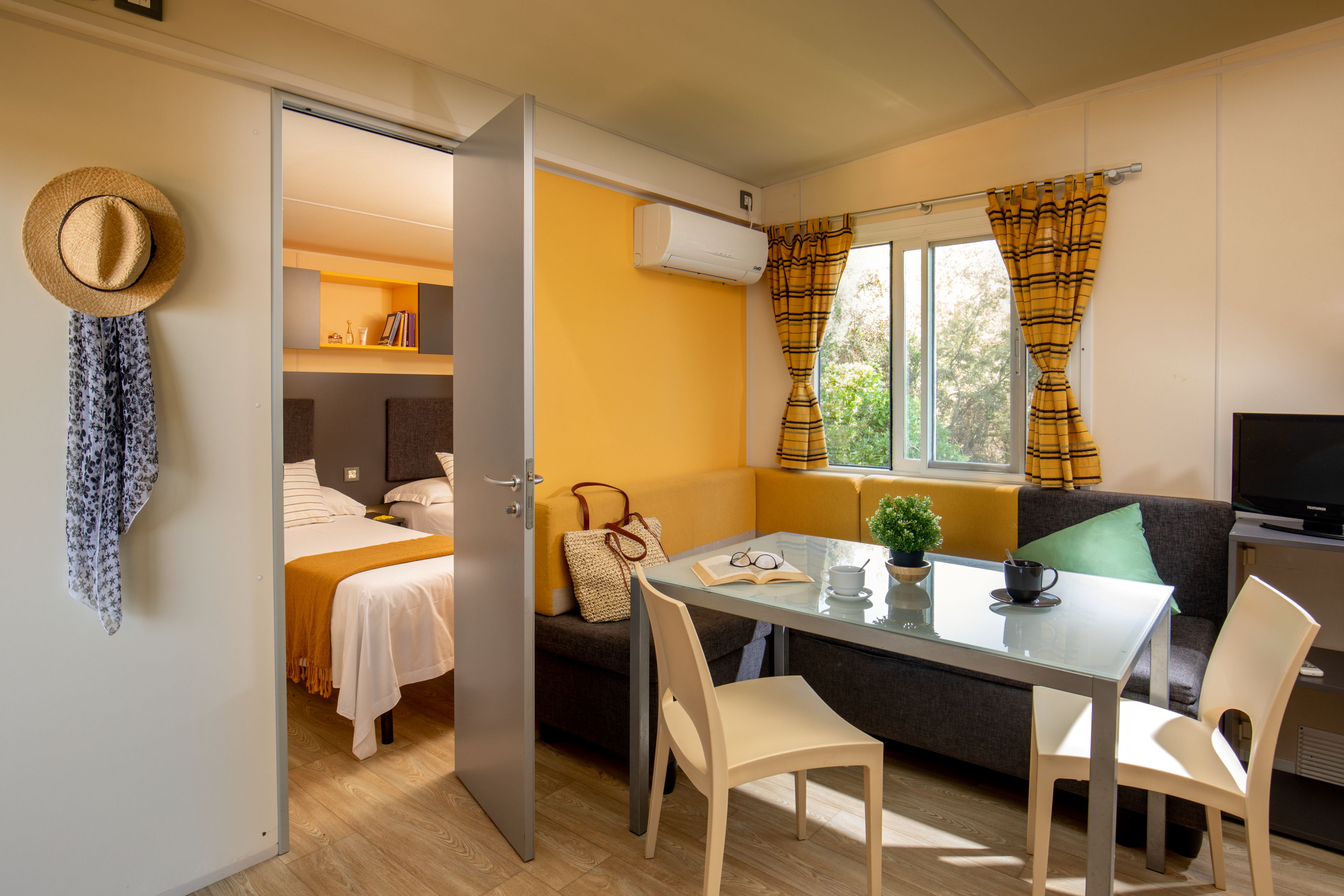 🌿 Mobile Home in the Green Area Spacious and functional, this mobile home is ideal for families or small groups, located about 200 meters from the sea. It features large, well-organized spaces to ensure a comfortable holiday.